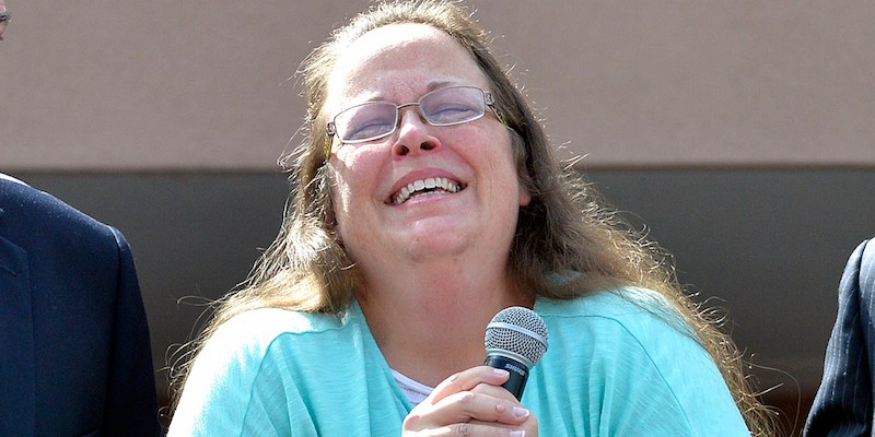 “The weak and the botched shall perish: first principle of our philanthropy,” wrote Nietzsche. “And one should help them to it.” The most recent applicant for this particular brand of charity is the Rowan County, Kentucky clerk called Kimberly Bailey Davis. Faced with the “heaven or hell decision” of whether or not to issue a marriage license for a couple of “Christ-despising queers,” Mrs Davis chose the road less-traveled; she went the path of the martyr. She refused, in other words, to do her job—sworn oath and court order be damned. And for five exquisite days in bare contempt of court, Mrs Davis did for us what we would’ve liked to do ourselves: keep the loonies behind bars.